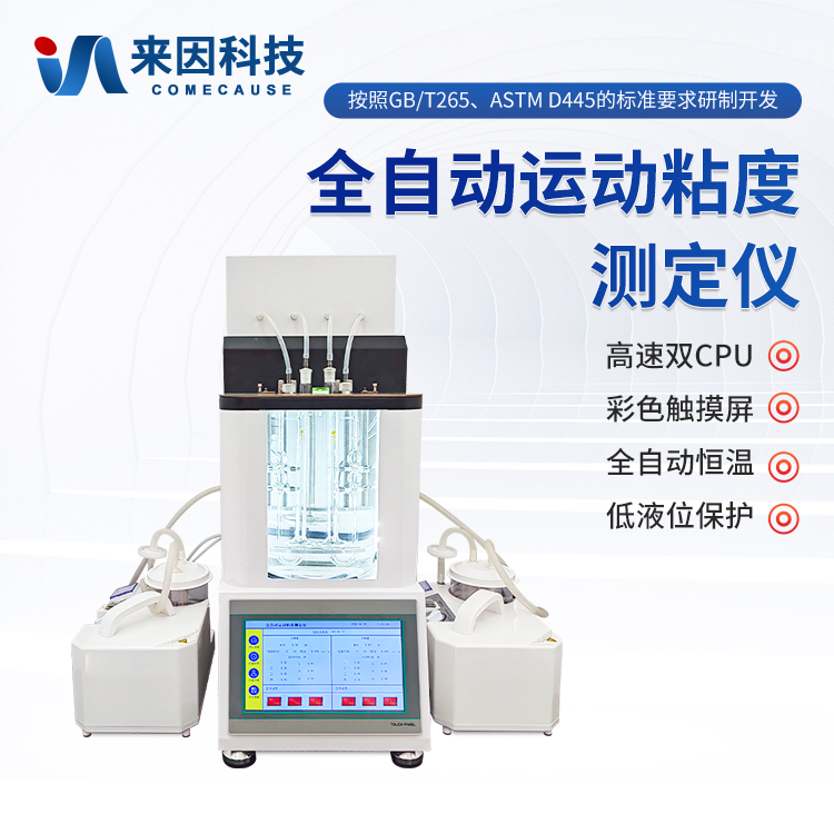全自动运动粘度测定仪是按照GB/T265、ASTM D445的标准要求研制开发,用于测定液体、石油产品的运动粘度,结构设计精巧、美观、实用、操作舒适。一键快速恒温、油样上吸、粘度检测、粘度值计算、打印、粘度管清洗、烘干粘度管,不需要人工操作,仪器自动完成,一次可同时做2个样品的实验,提高工作效率;广泛应用于药典、石油、化工、科研、计量、商检、电力等部门。